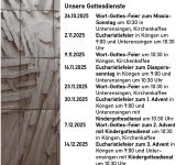 Unsere GottesdiensteBei Wort-Gottes-Feier wird ein Fahrdienst nur noch mit Anmeldungen angeboten. Bitte melden Sie sich hierfür, bis zum jeweiligen Donnerstagvormittag vor …
