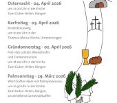 Liebe Gemeinde, mit großen Schritten gehen wir der Kar- und Osterzeit entgegen. Die einzelnen Gottesdienste können Sie der Gottesdienstübersichtentnehmen. Die …