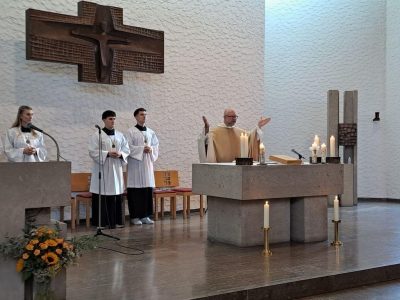 St. Kolumban war am Sonntag, 12.10. bis auf den letzten Platz besetzt: Zahlreiche Gemeindemitglieder aus der ganzen Seelsorgeeinheit und geladene Gäste waren gekommen, um die feierliche Investitur des neuen Pfarrers Tobias Freff mitzuerleben und mitzufeiern. Im Gottesdienst wurde spürbar: Hier beginnt ein neuer Abschnitt, mit viel Schwung, guter Laune und Herzlichkeit.