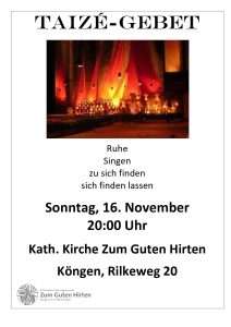 jeweils um 19.15h im Gemeindehaus St. Johannes, Nürtingen, Vendelaustr. 30